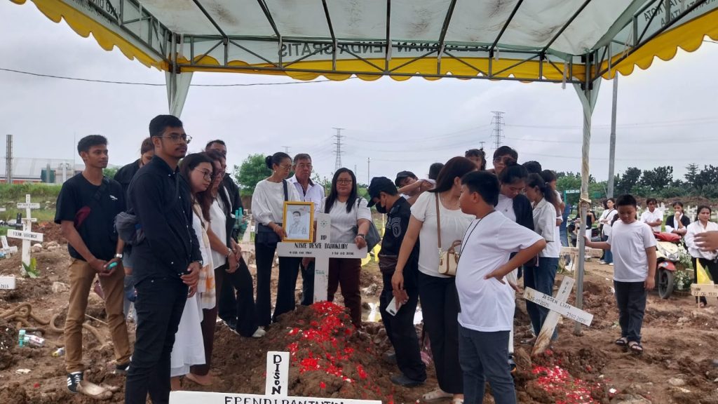 Tangis haru mengiringi saat peti jenazah diturunkan ke liang lahat. Doa-doa dipanjatkan, serta pujian kembali dinyanyikan sebagai ungkapan iman dan pengharapan akan kehidupan kekal yang telah dijanjikan Tuhan.