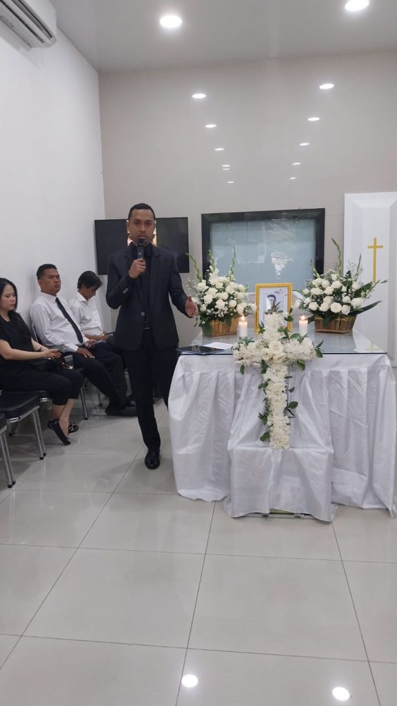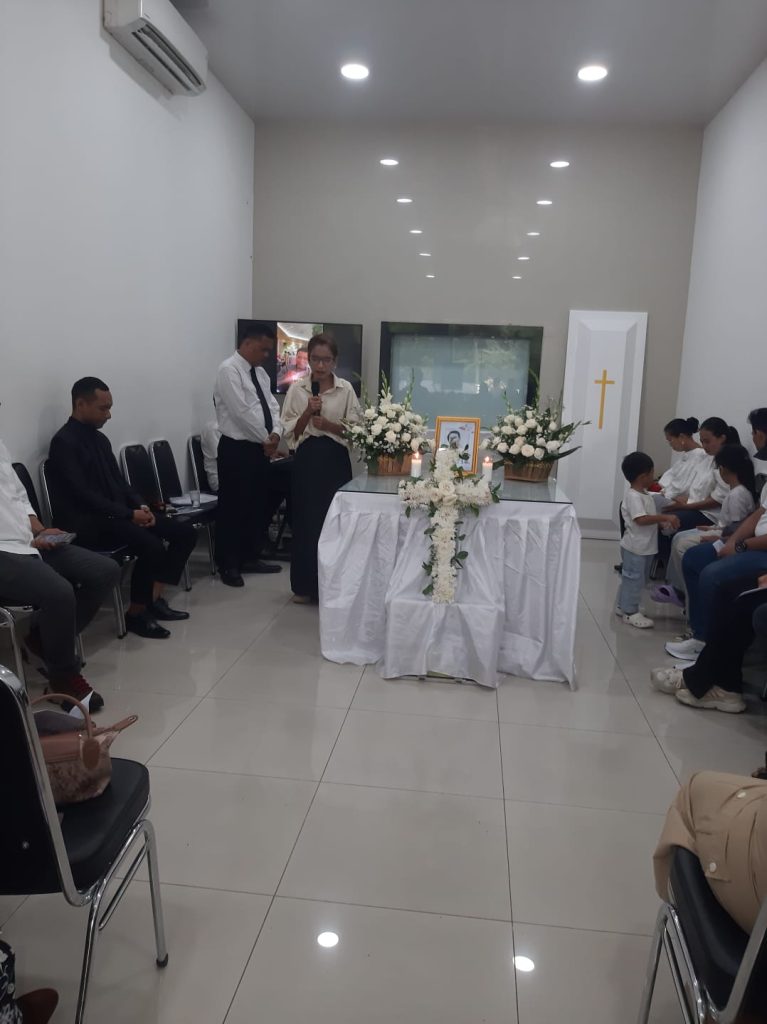 Ibadah di rumah duka dipimpin oleh Pendeta Samuel, didampingi oleh Pendeta Sarah Blegur dan Pendeta Edisi Wun dan Anna Paoh. Ketiganya menyampaikan firman penguatan tentang pengharapan dalam Kristus, serta menegaskan bahwa kematian bukanlah akhir bagi setiap orang yang percaya kepada Tuhan.