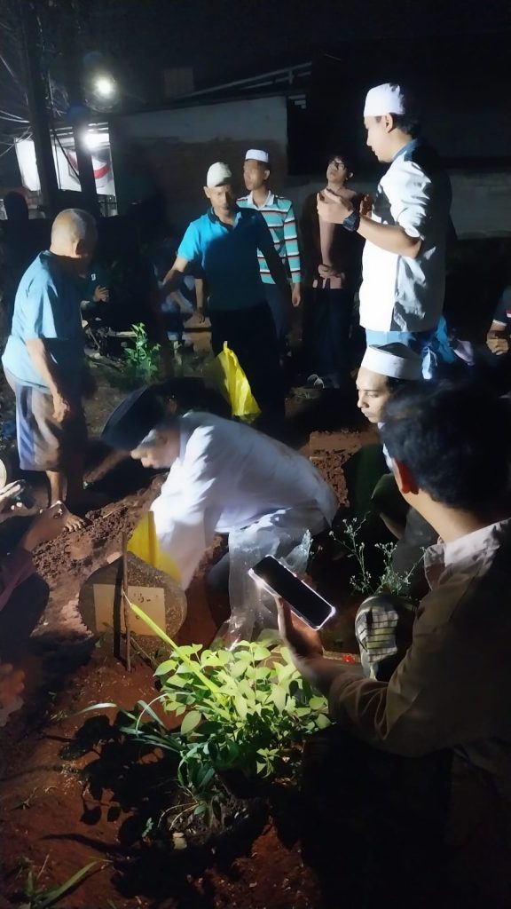 Prosesi pemakaman berlangsung dengan khidmat dan penuh keharuan. Doa kembali dipanjatkan oleh ustaz yang memimpin jalannya pemakaman. Tangis keluarga pecah saat jenazah mulai dimasukkan ke liang lahat, menandai perpisahan terakhir dengan almarhum.